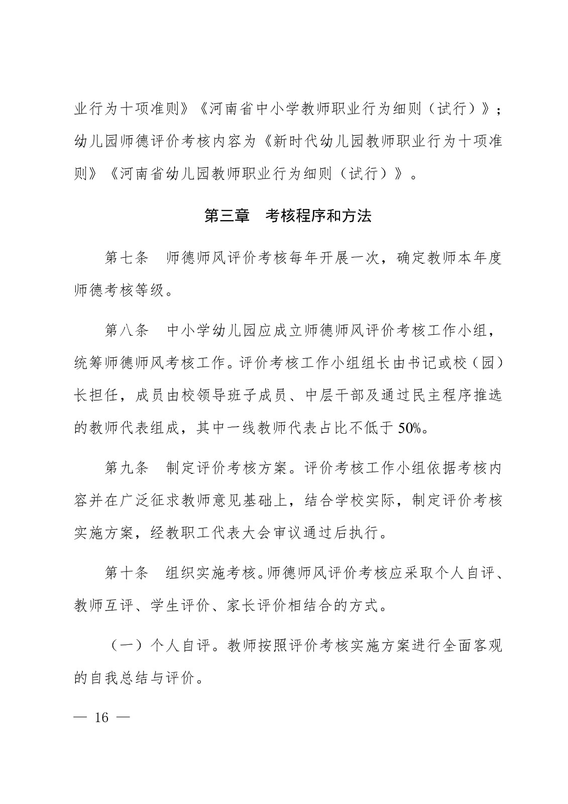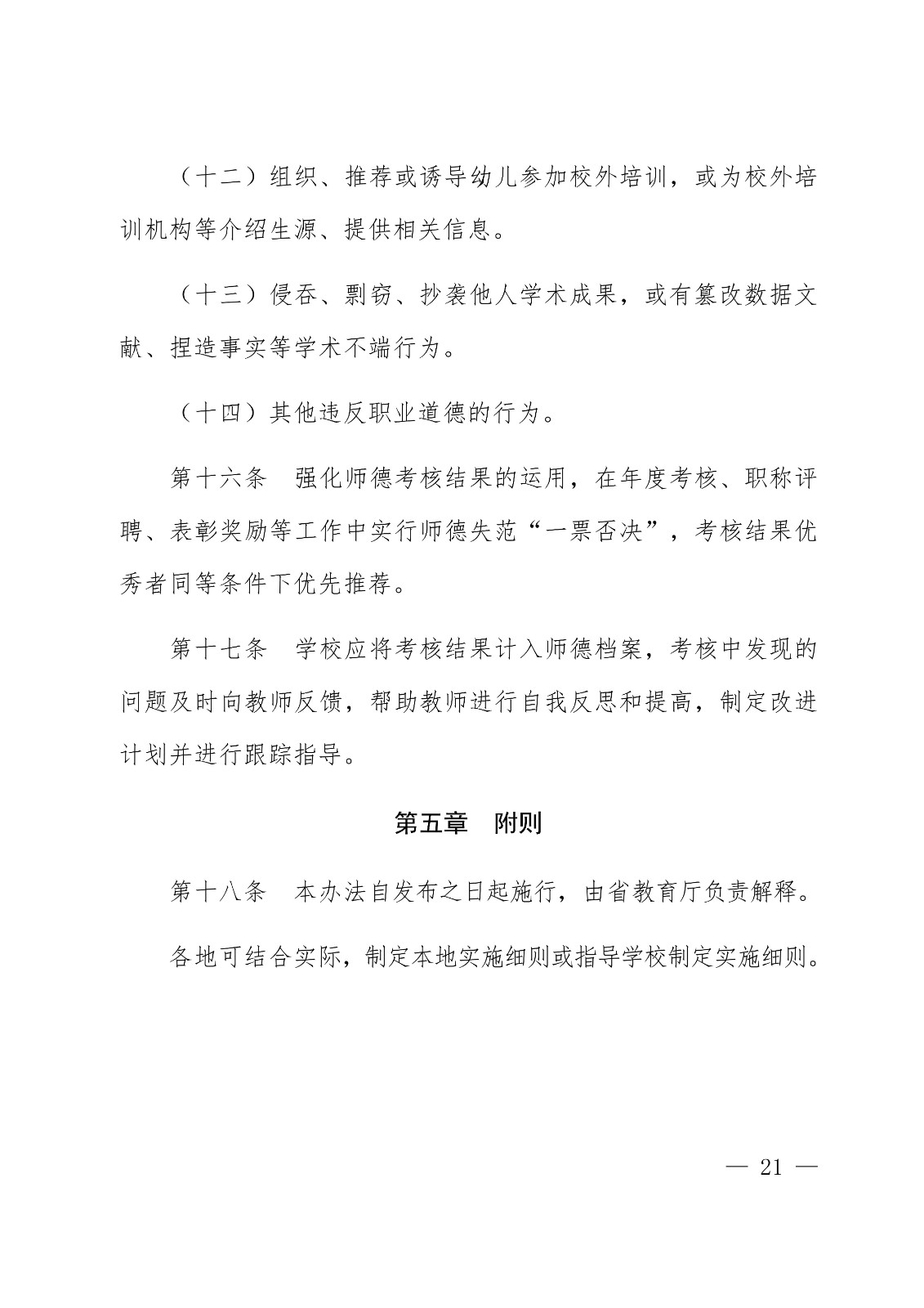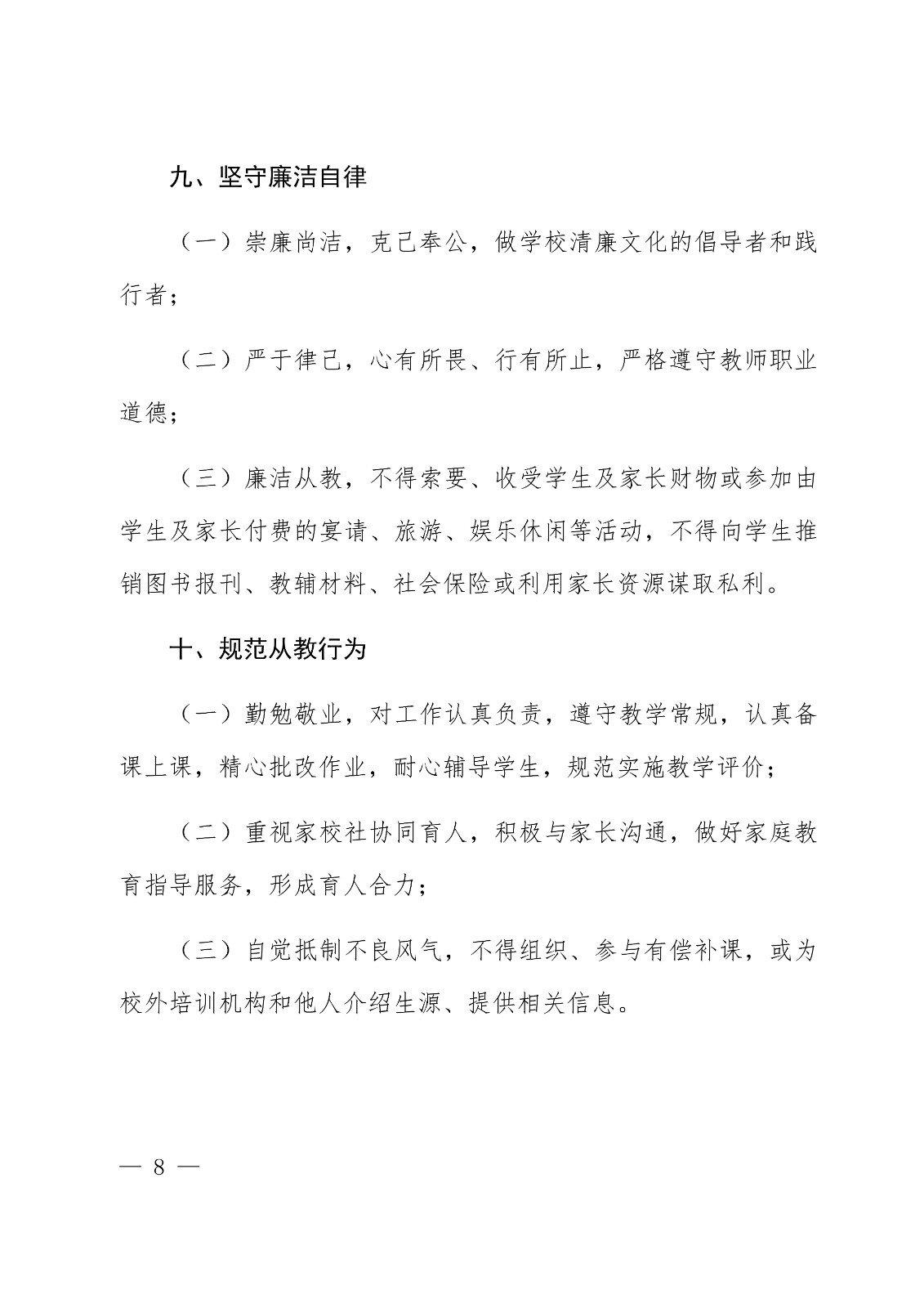 为深入贯彻落实《教育强国建设规划纲要(2024-2035年)》和《中共中央 国务院关于弘扬教育家精神加强新时代高素质专业化教师队伍建设的意见》,健全新时代师德师风建设长效机制,结合我省教师队伍建设实际,省教育厅制定《河南省中小学教师职业行为细则(试行)》等文件。现印发给你们,请认真贯彻执行。