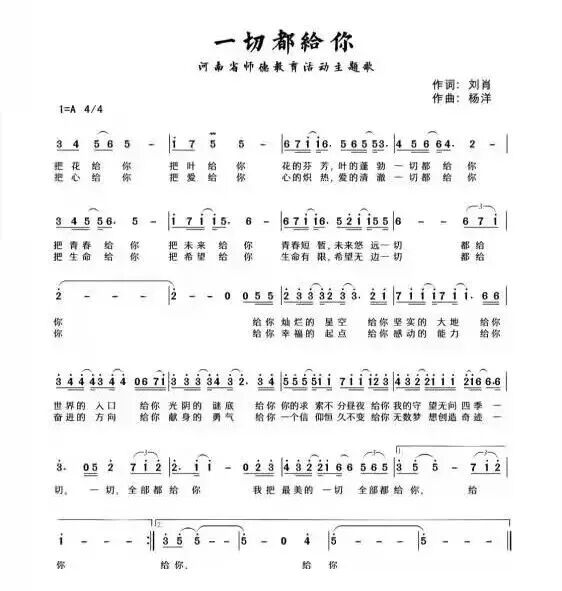 应邀为《一切都给你》谱曲的,是郑州大学音乐系孙未老师。得知要为可敬可爱的人民教师“树碑立传”,出身教育世家的孙老师欣然点头,并表示分文不取。